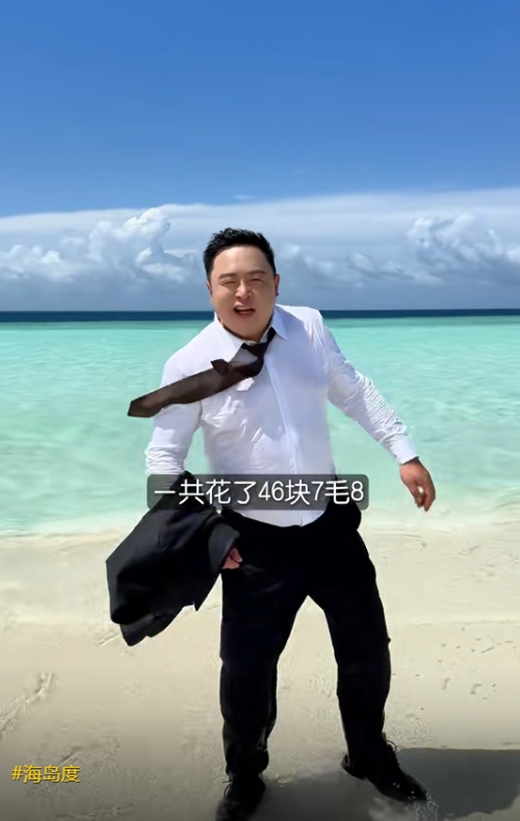 9月4日,阎鹤祥又在社交平台发布了一段视频,再次引发了网友们的热议。视频中,他和妻子在马尔代夫的一处“岛屿”上度假,阎鹤祥还煞有介事地称:“我脚下是刚刚买的岛,这个岛上午有,下午涨潮就没了,一共花了46块7毛8。”这可把网友们逗乐了,大家纷纷调侃:“没想到有一天也能看到阎鹤祥秀恩爱。”