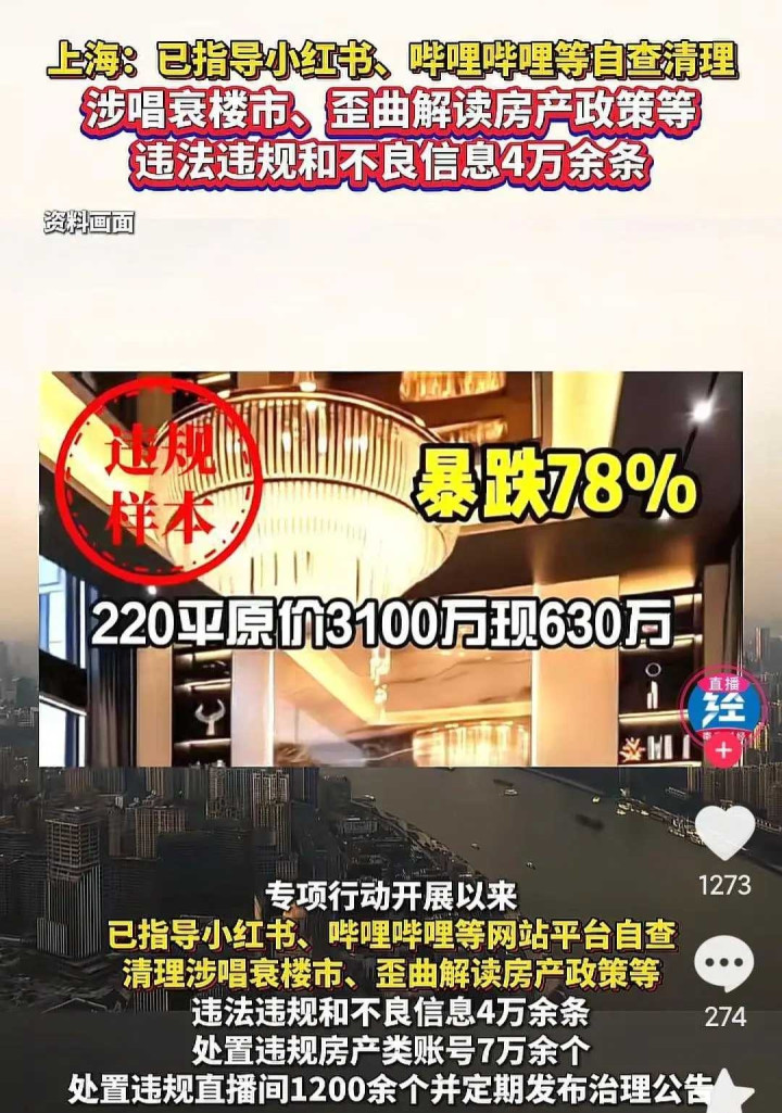 主要是指针对房产领域的虚假宣传、造谣传谣等乱象,直接处理了67万个违规账号,清理了80多万条违规信息,就连一些小有名气的房产大V账号,也难逃禁言的下场。