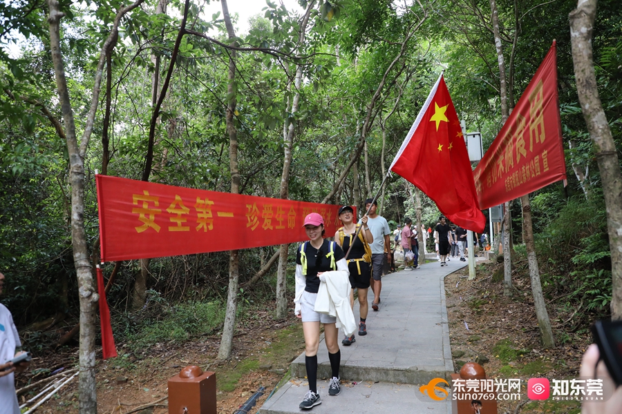 与此同时,自然山水也吸引了大量游客登高望远。作为“东莞第一峰”的银瓶山谢岗景区在假期迎来了登山热潮,10月2日单日游客量逼近1.2万人次。登山道上,许多游客手持国旗,用攀登表达对祖国的热爱。家庭游、亲子游成为主流,游客许淑娟一家特意带着国旗计划登顶打卡,而70岁的朱彩荣也在女儿陪伴下享受山林清新。景区标志性景点“碧水叠潭”旁,游客纷纷拍照留念。为应对客流,谢岗镇相关部门提前部署,通过科学引导车流、增设服务点等措施保障秩序与安全。